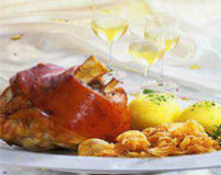 Vom 4. Septemberwochenende bis einschließlich 1. Oktoberwoche. Neben Grillhaxe mit Gräwes, Schweinebäckchen und Schlacht- platte können Sie auch aus der regulären Speisekarte wählen. |